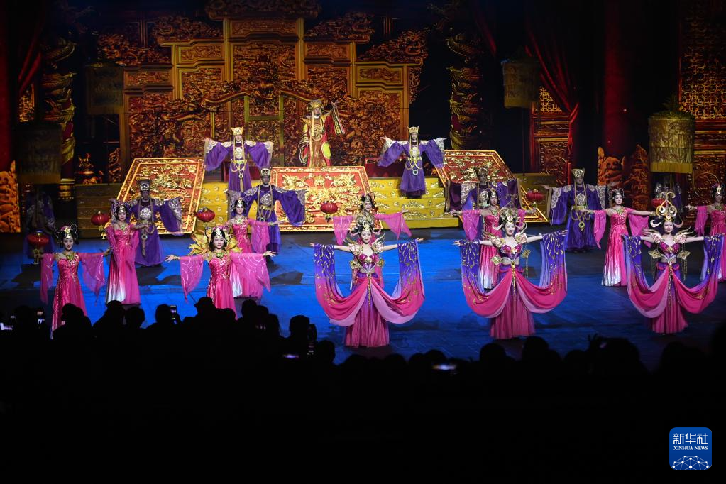 游客在杭州宋城景區觀看大型歌舞《宋城千古情》(3月20日攝)。