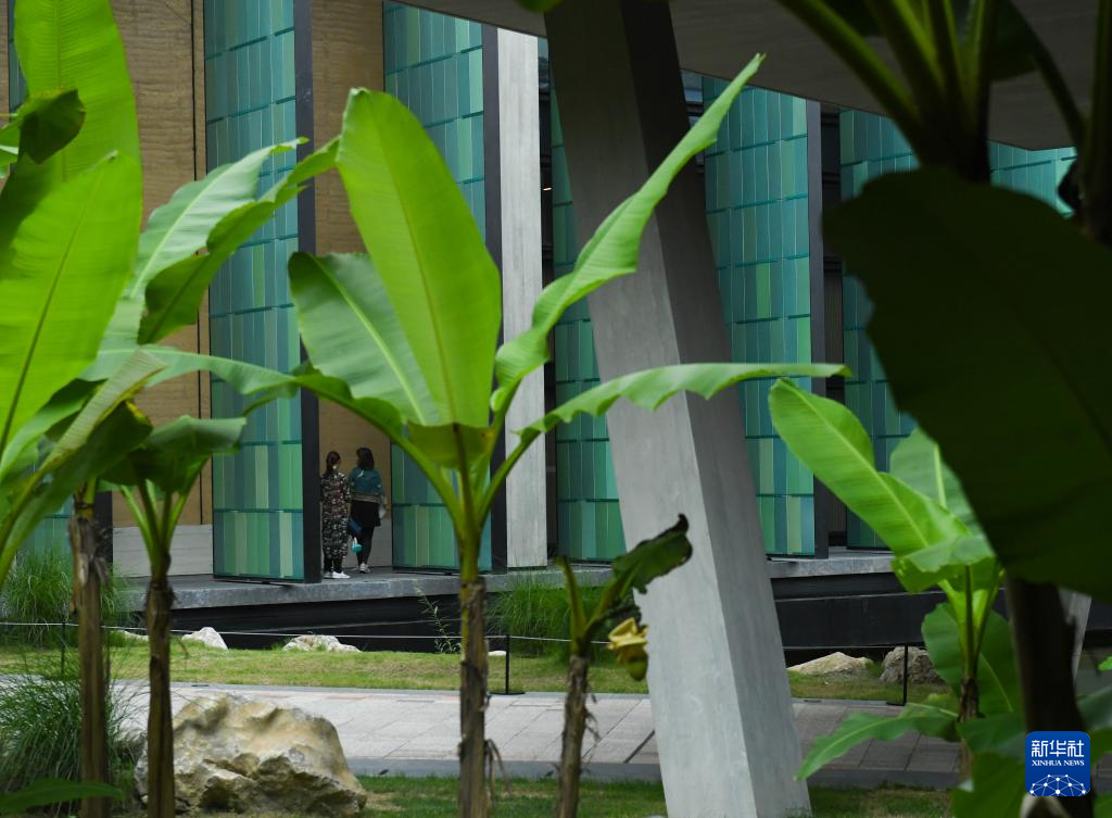 芭蕉和青瓷相映襯的國家版本館杭州館(5月31日攝)。
