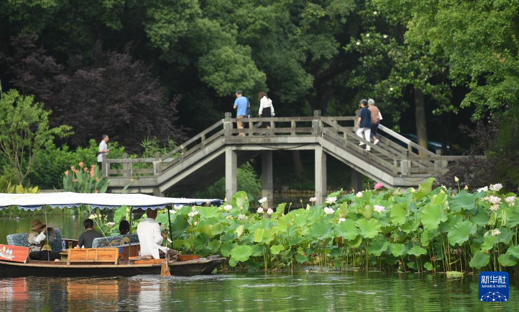 游客在西湖曲院風荷觀賞荷花(6月11日攝)。
