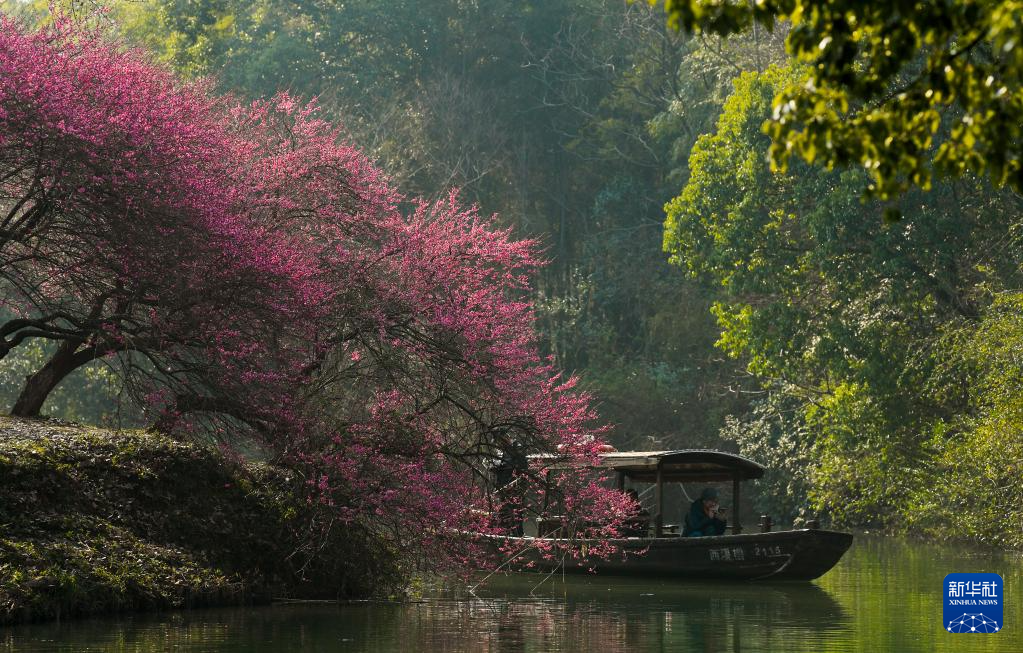 游客在杭州西溪濕地體驗“曲水尋梅”項目(2月18日攝)。