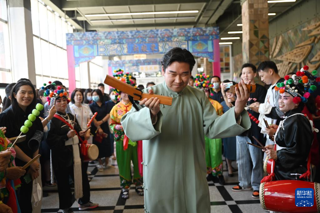 6月14日,觀眾與演員在北京市朝陽區文化館共同表演。