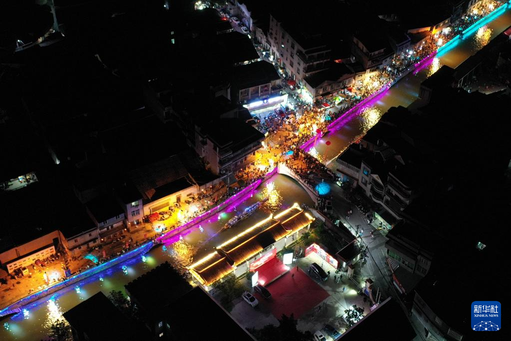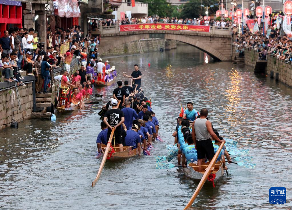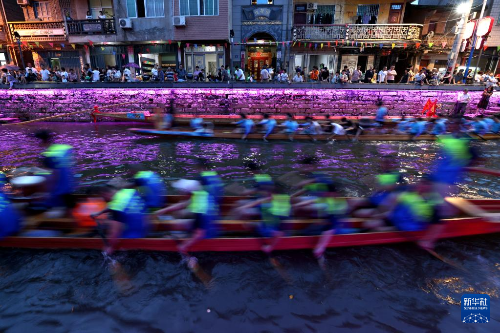 6月17日晚,在福建省福州市長樂區三溪村,數十艘龍舟在小溪中競渡,南溪兩岸及石橋上人潮如涌,熱鬧非凡。夜賽龍舟是福建福州長樂區三溪村獨有的端午習俗,已經沿襲600多年。每年端午節前后,當地村民舉行夜賽龍舟活動,借此祈盼風調雨順、平安健康。