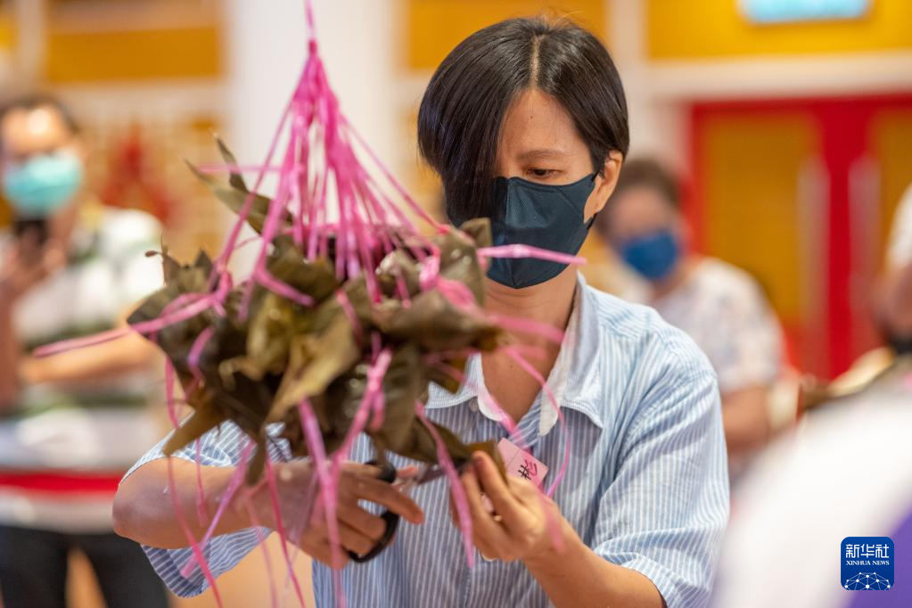 6月18日,人們在馬來西亞吉隆坡參加裹粽比賽。