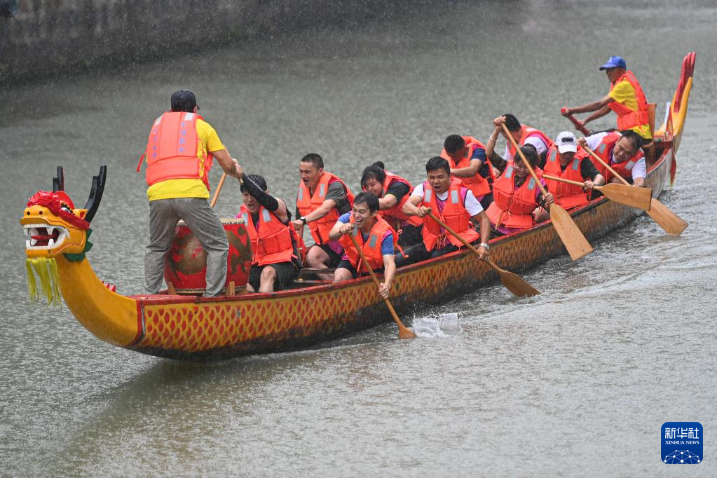 6月18日,農民代表隊冒雨參加龍舟比賽。