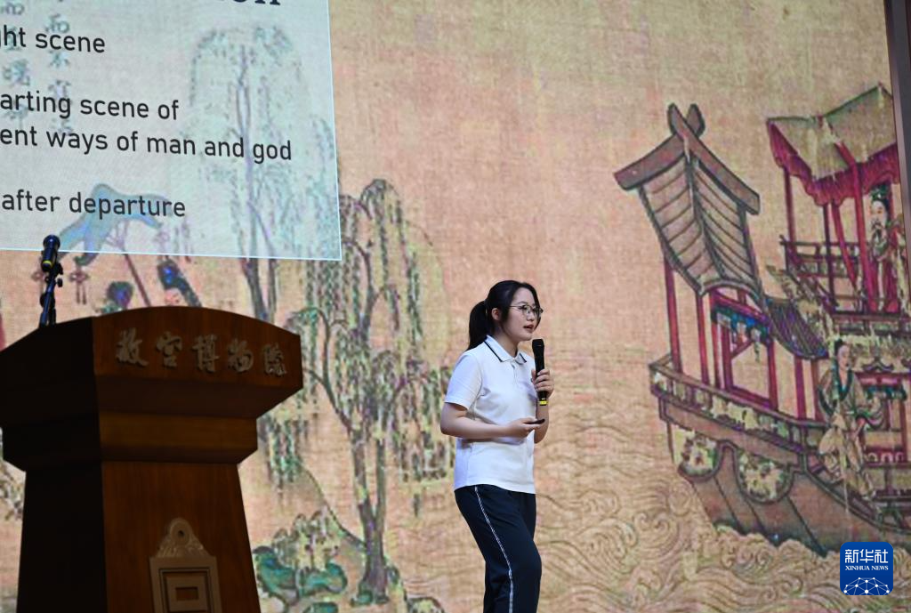 6月19日,北京市第六十五中學學生用雙語介紹故宮博物院院藏文物。