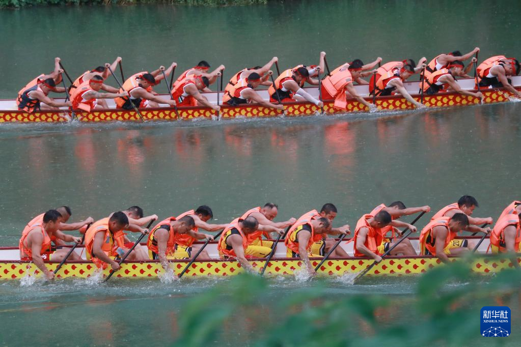 6月20日,選手們參加湖南省漣源市橋頭河鎮群眾龍舟賽。