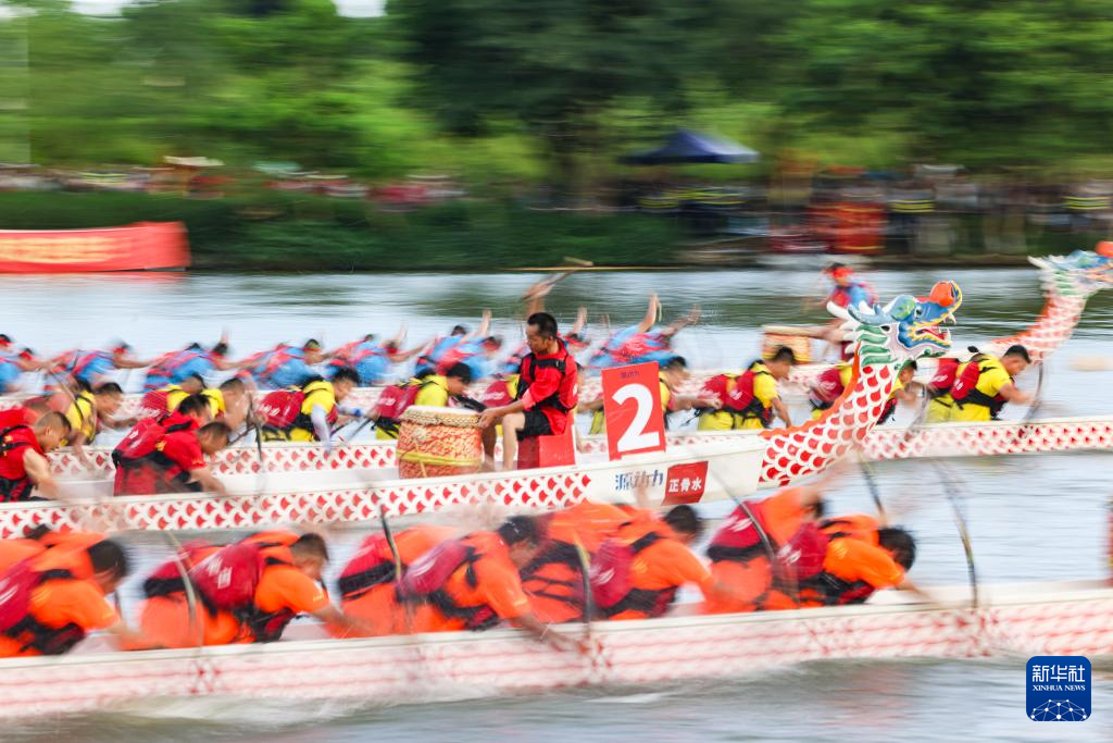 6月20日,在廣西玉林園博園,選手進行龍舟競賽。