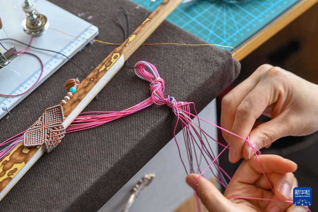 目前,徐曉雪一邊自己創業,一邊收徒授藝開展公益培訓課程。她希望有更多年輕人愛上繩編技藝,把中國的傳統文化發揚光大。