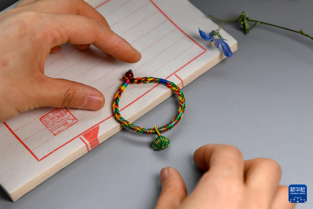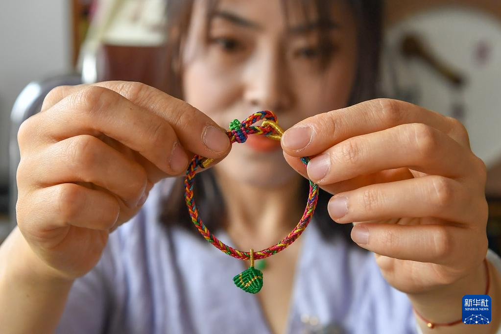 臨近端午節,吉林省非物質文化遺產繩編項目傳承人徐曉雪格外忙碌。各色彩繩在她和團隊成員手中上下翻飛,不一會就變成五彩繩、香囊、荷包等端午節特色繩編工藝品。