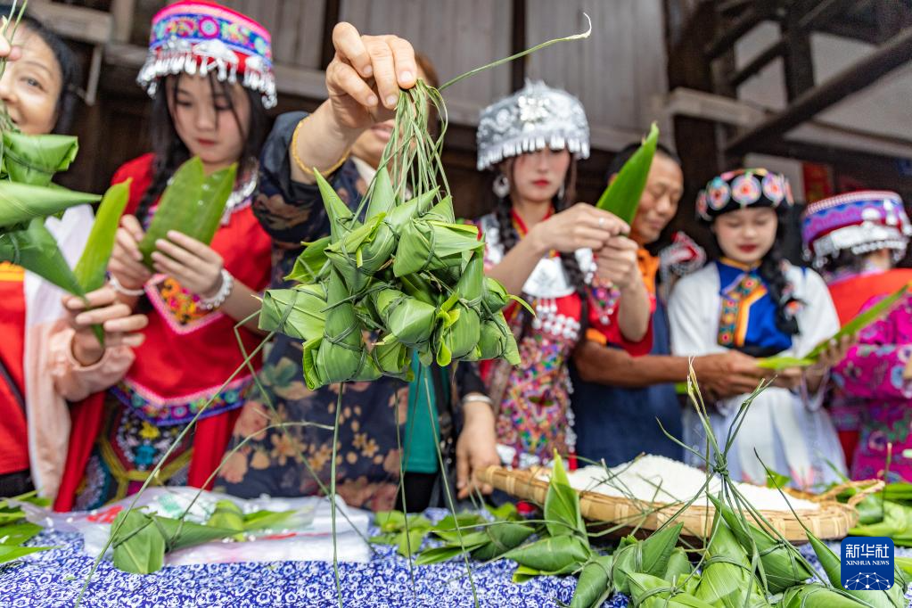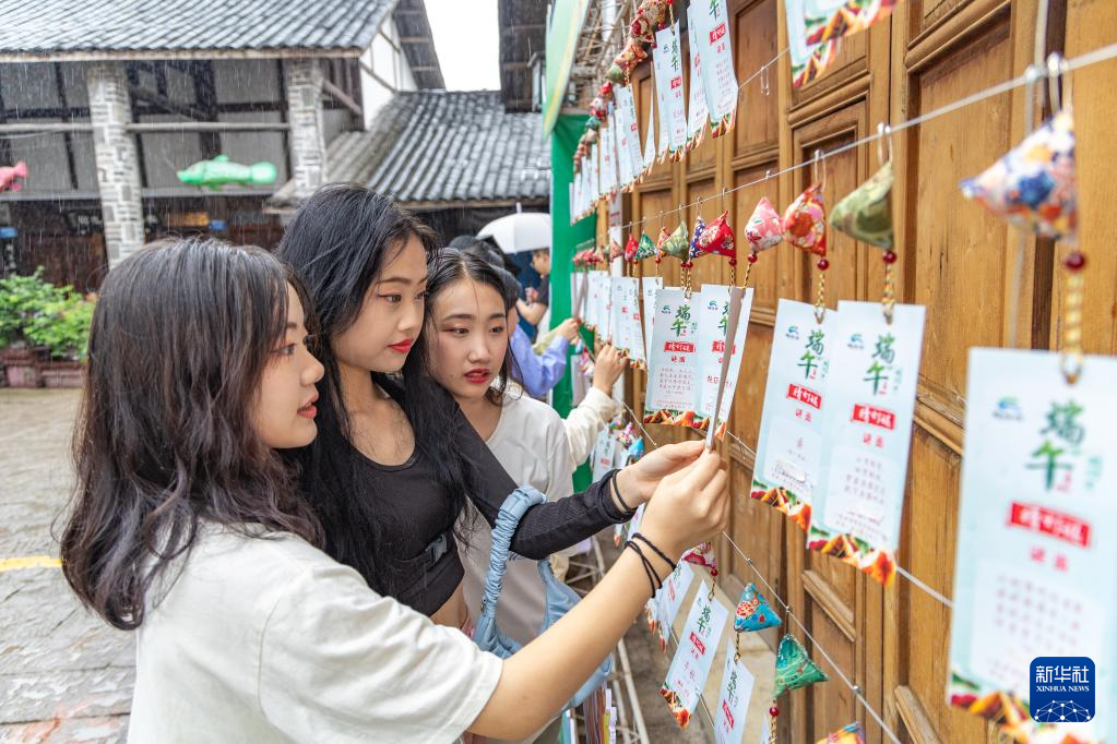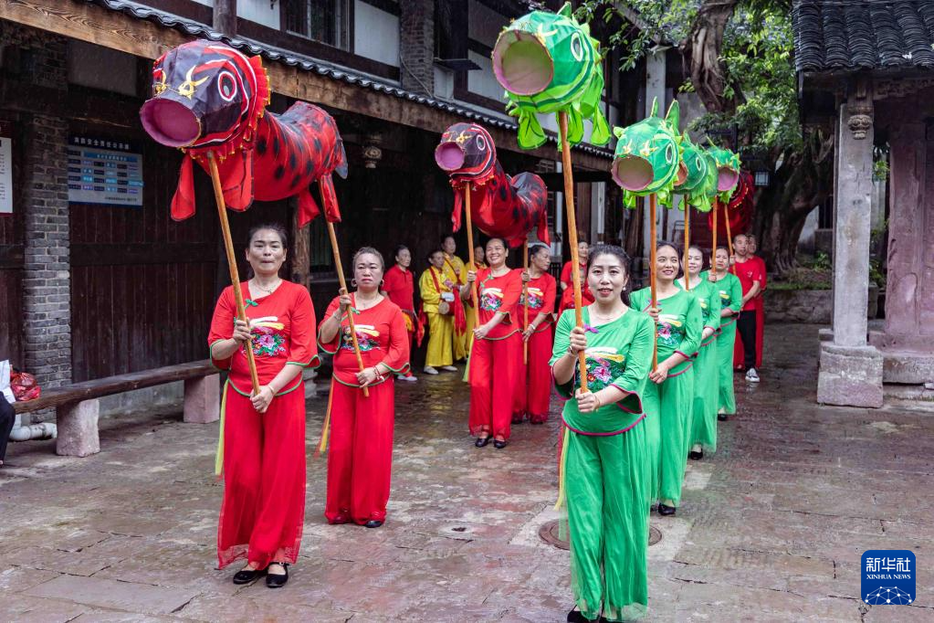 在端午來臨之際,重慶市永川區板橋鎮的村民開展“我們的節日·端午”主題活動,通過包粽子、制作香囊、舞泥鰍燈、打腰鼓等傳統民俗活動迎接佳節。