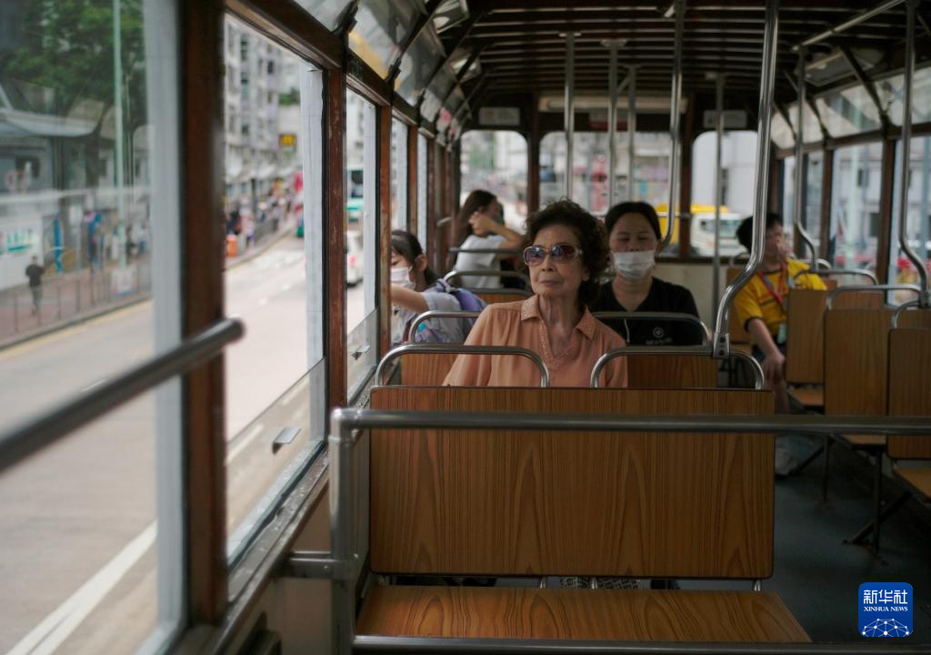 5月5日,香港市民乘坐“叮叮車”。新華社記者 王申 攝