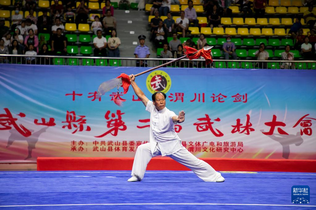 6月24日,在甘肅省天水市武山縣,百余名武術健兒在當地舉行的“武林大會”上一展身手,用精彩紛呈的武術表演豐富大眾節日文化生活,展示傳統武術文化魅力。