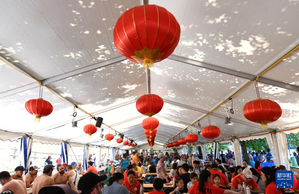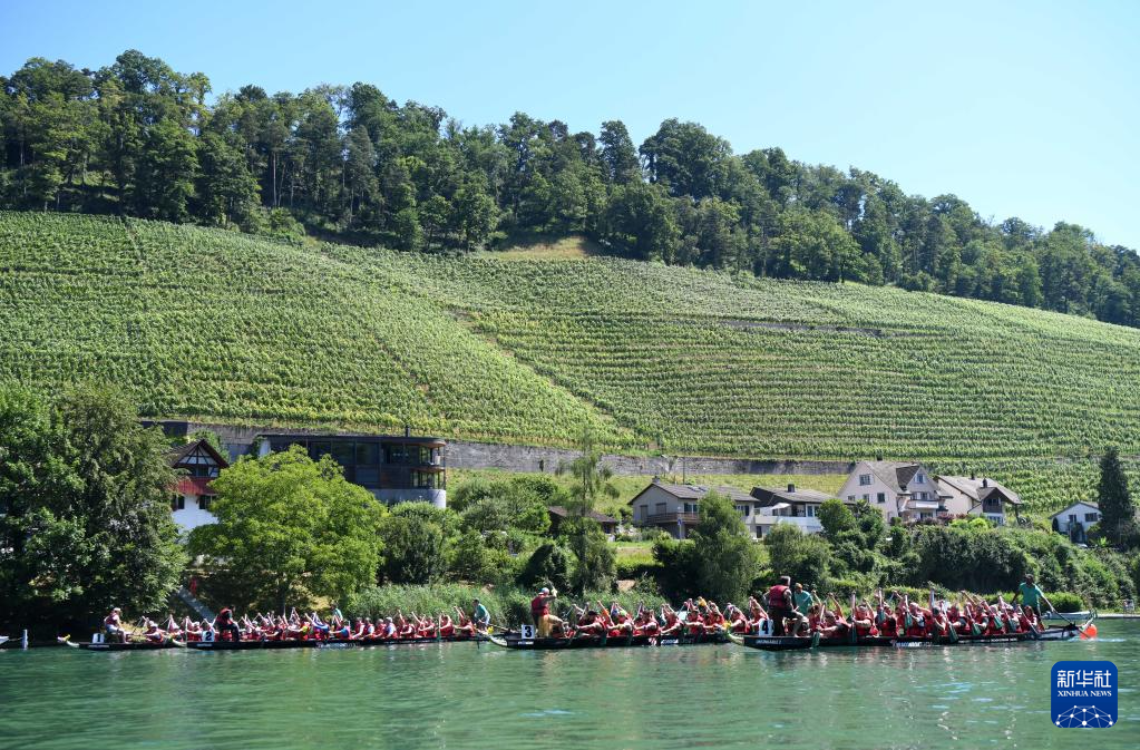 6月25日,在瑞士埃格利紹,人們參加賽龍舟活動。