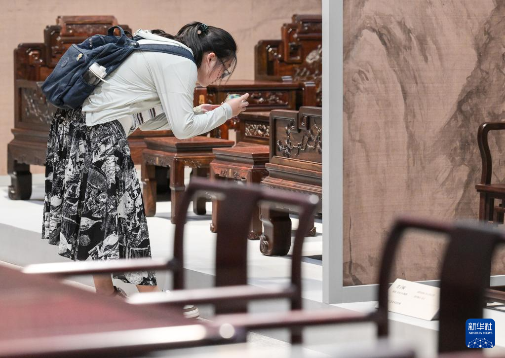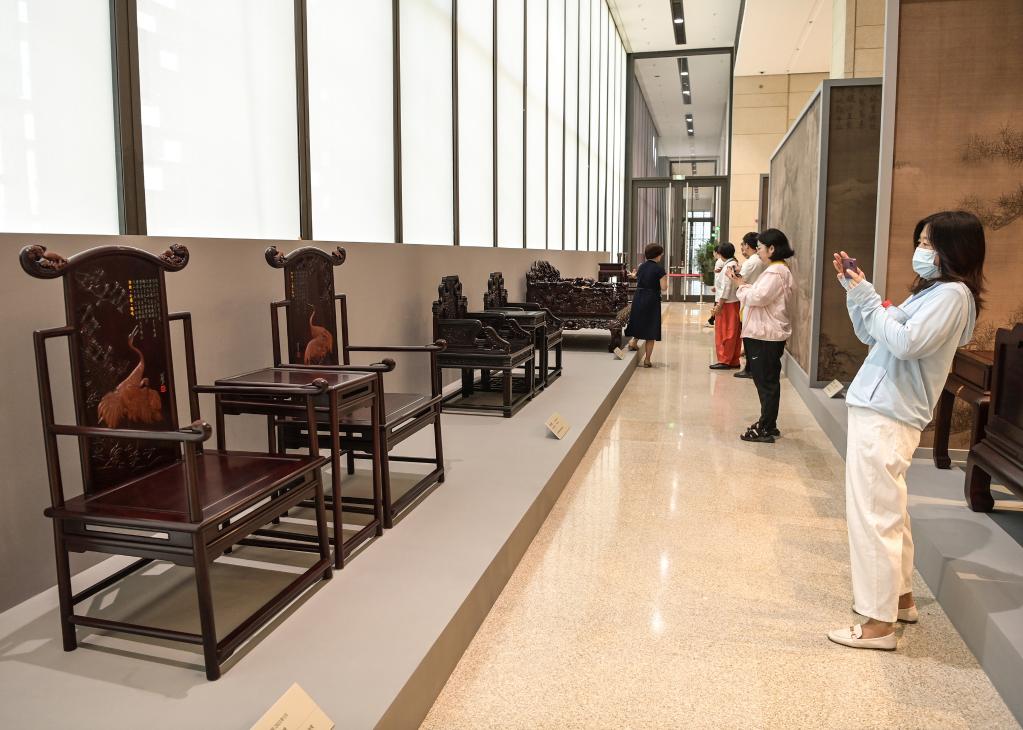 當日,“心·傳——陳玉樹新時代古典家具藝術展”在位于北京的中國工藝美術館、中國非物質文化遺產館舉辦,展出了高級工藝美術師陳玉樹近年創作的20套古典家具,展現出中國木作技藝之美。