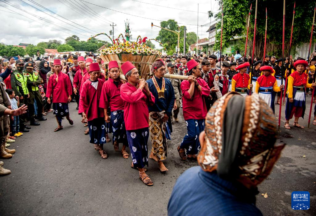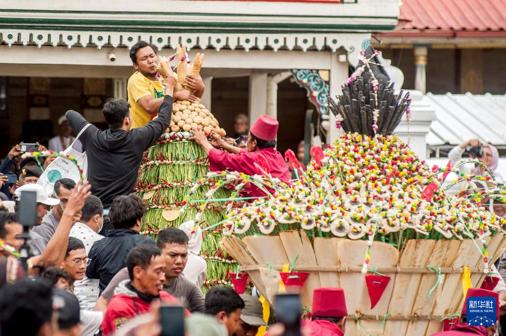 “搶山”是印度尼西亞部分地區為慶祝宰牲節舉行的特色活動。人們扛著用水果、蔬菜等食物堆成的“小山”游行,并在游行結束后“爭搶”食物,以此祈求節日祝福。