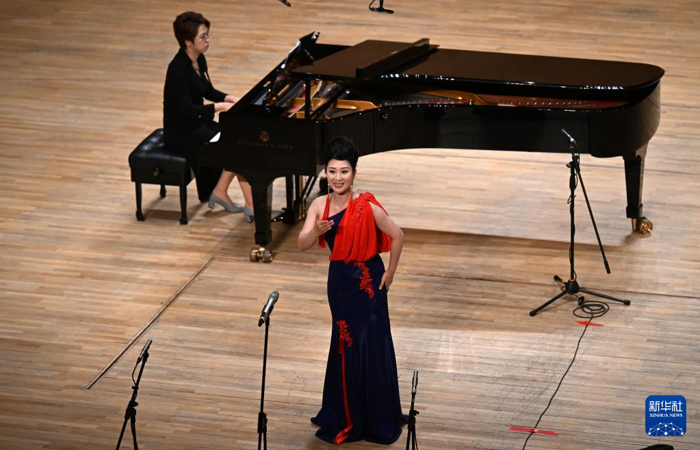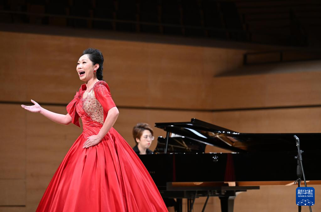 7月1日,天津歌舞劇院演員陳姝在演唱選自歌劇《玉鳥兵站》的曲目《我心永愛》。