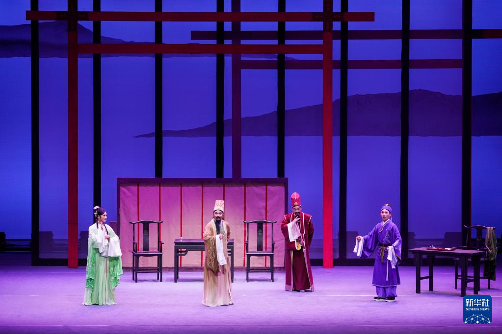 演員在黃梅戲《第一山》中表演(7月2日攝)。