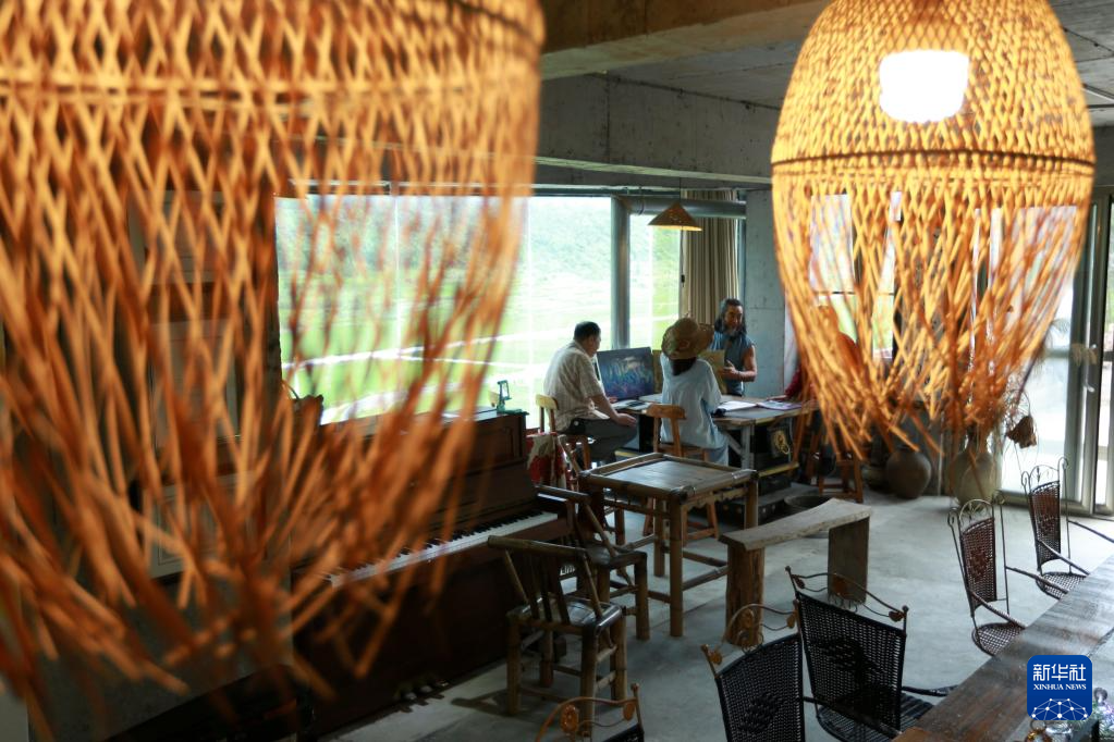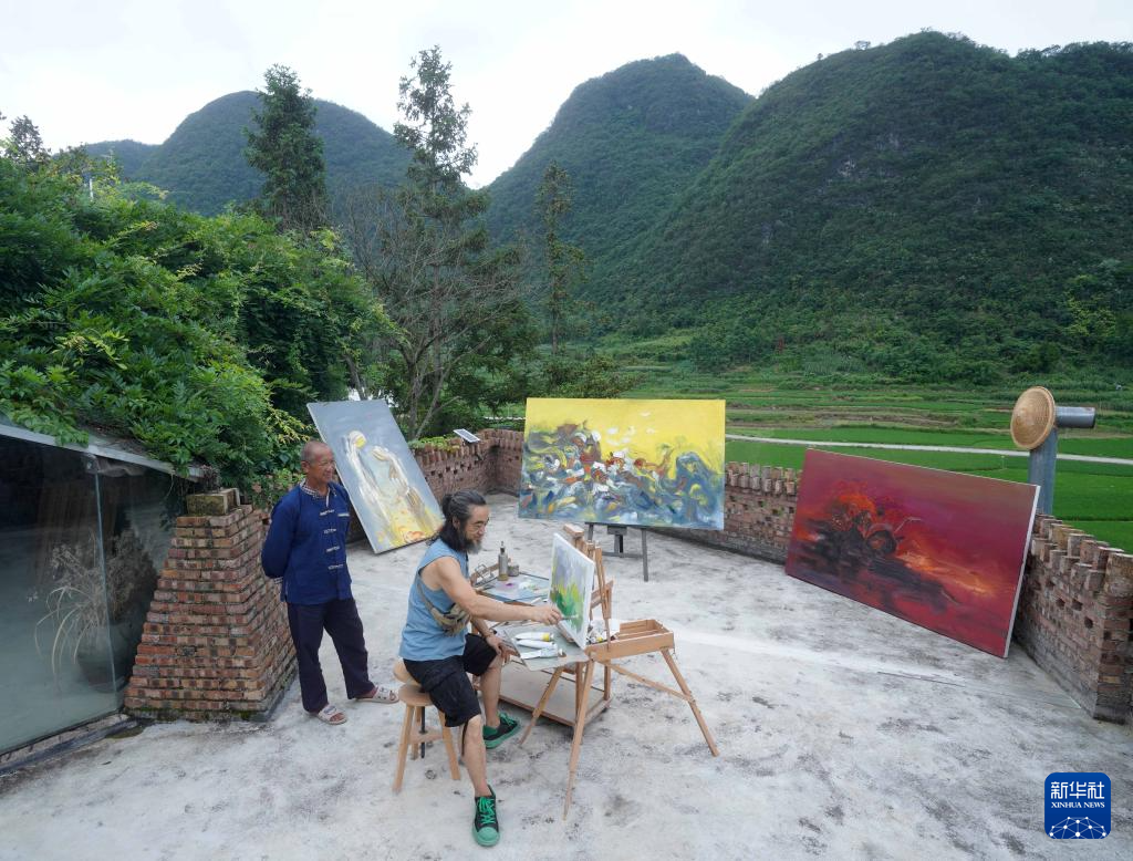 7月3日,在貴州省荔波縣朝陽鎮洪江村,來自各地的藝術從業者進行藝術交流。