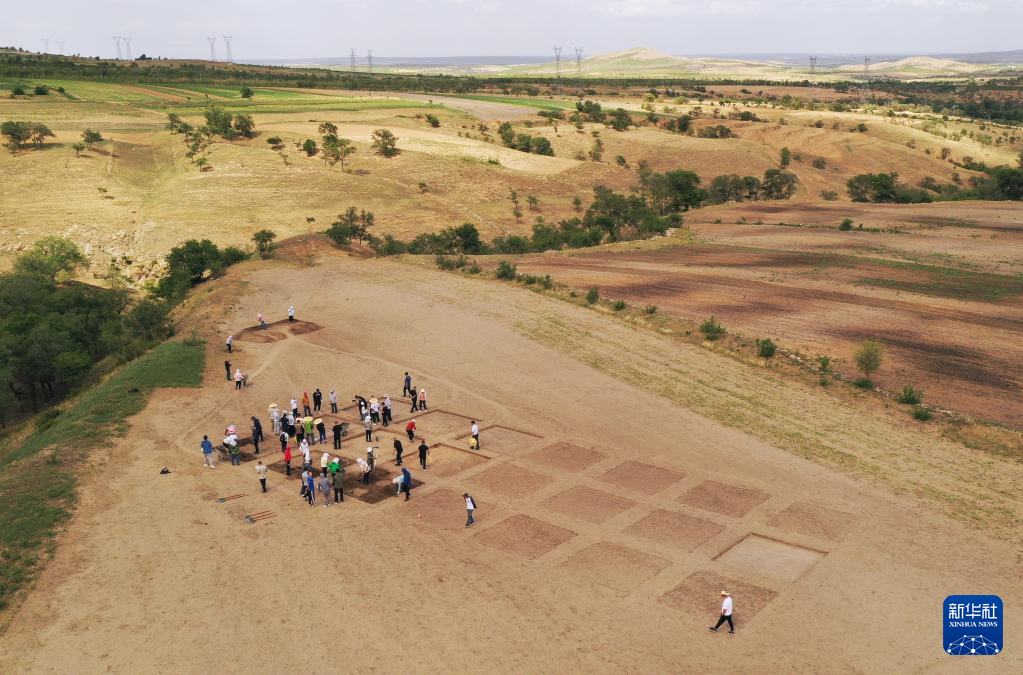 俯瞰敖漢西大梁遺址發掘現場(7月5日攝,無人機照片)。