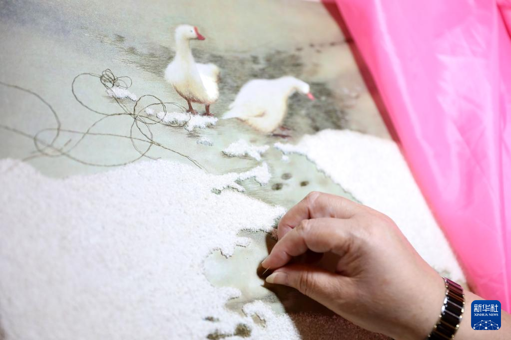 “刺繡是需要靜心來做的一件事情,必須得喜歡還能靜下來,心稍微有點浮躁作品就做不好?!睘榱诉_到最佳效果,王立君的很多作品耗費了相當長的時間,那些細細打磨的作品凝聚了主人的情感和匠心,格外精美。