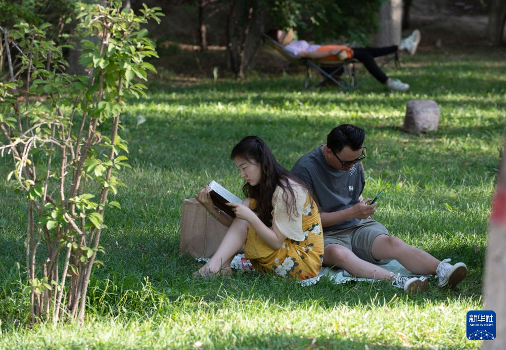 7月8日,市民在銀川市森林公園閱讀和寫作。