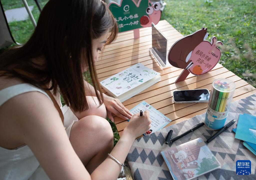 7月8日,在銀川市森林公園,讀者寫下閱讀感想。