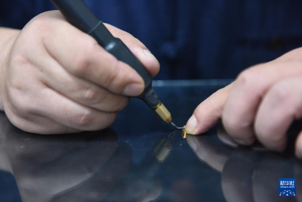 7月12日,吳永龍用烙鐵給“零件”上色。