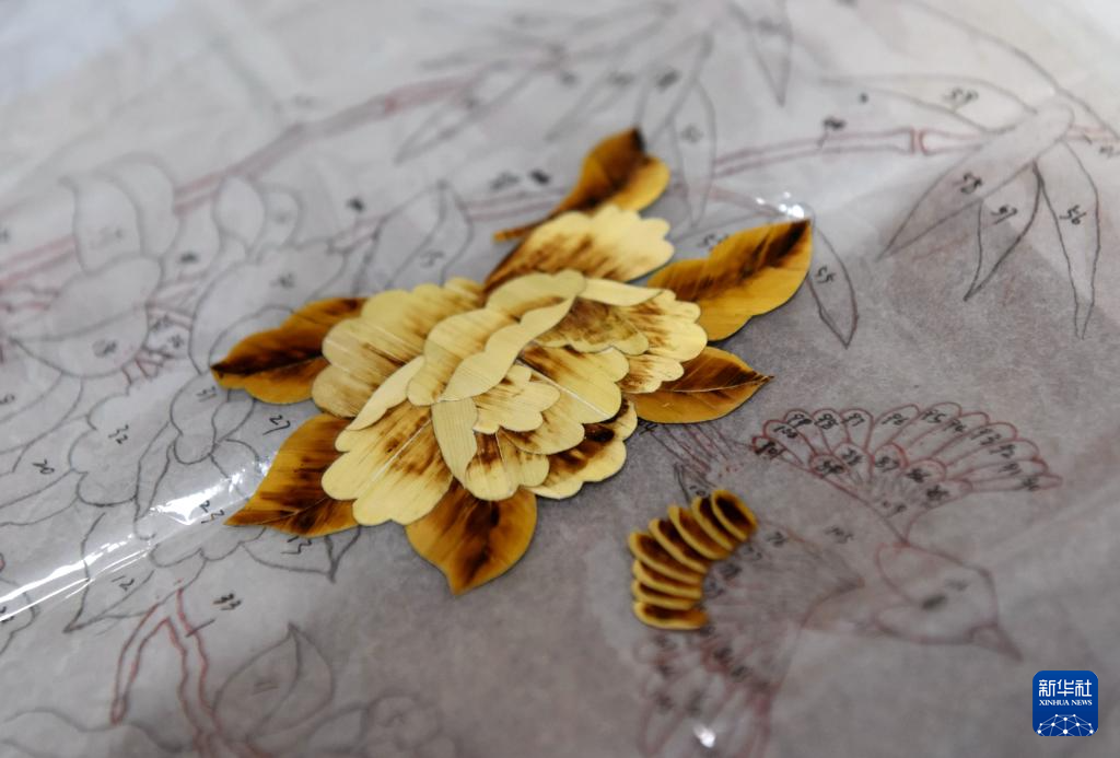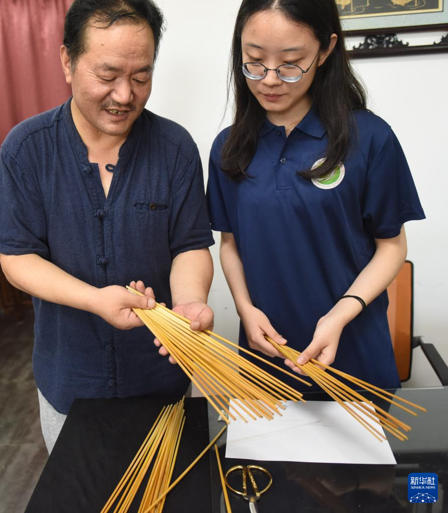 7月12日,吳永龍將“零件”從麥稈做成的條片上剪下。
