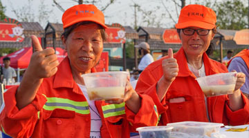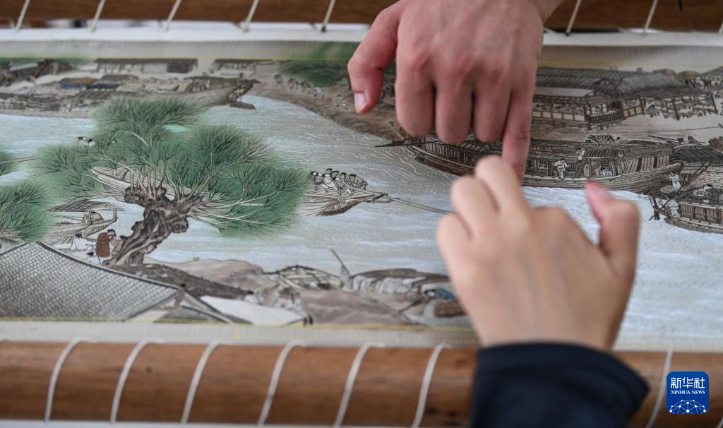 7月14日,在開封博物館,一位汴繡技師展示汴繡制作技藝。