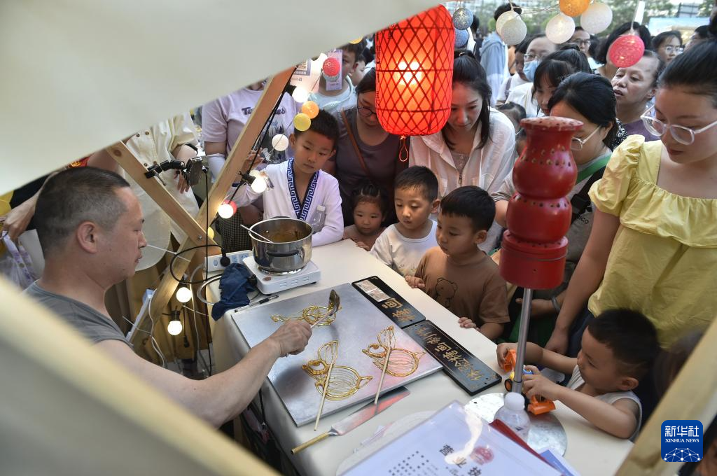 7月14日傍晚在開封市開元廣場拍攝的“非遺市集”現場。