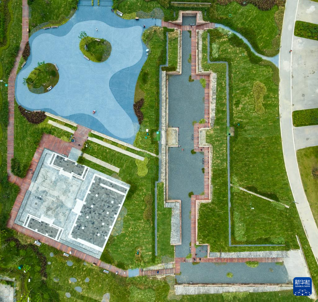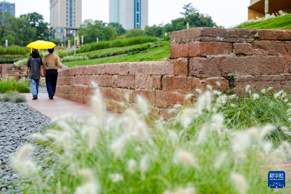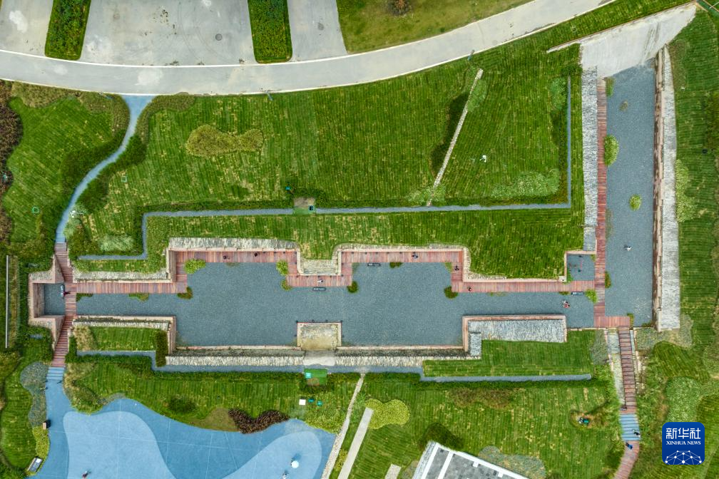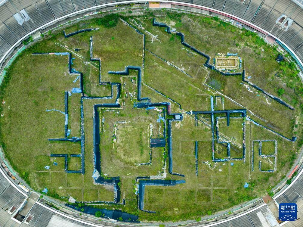 7月20日拍攝的位于成都體育中心內的東華門遺址公園內場遺址區(無人機照片)。