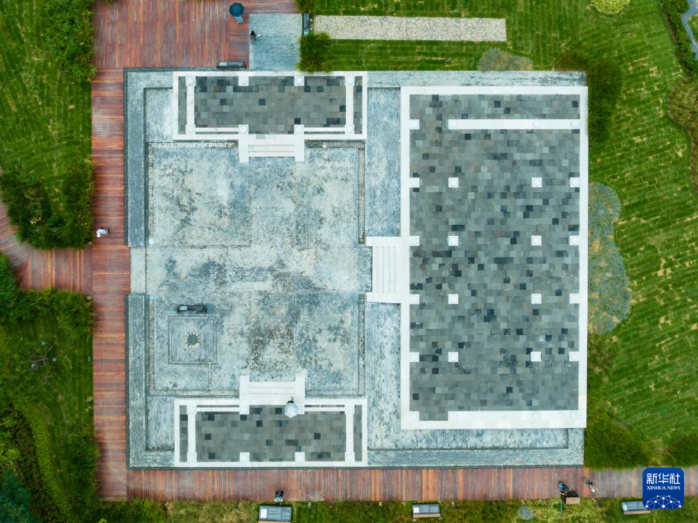 7月20日拍攝的成都東華門遺址公園外場遺址區內模擬展示的唐代庭院遺跡(無人機照片)。