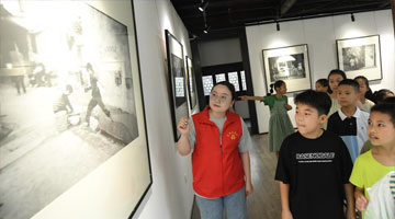 7月20日,在成都東華門遺址公園外場遺址區,參觀者拍攝原狀展示的明代蜀王府水道橋墩遺跡。