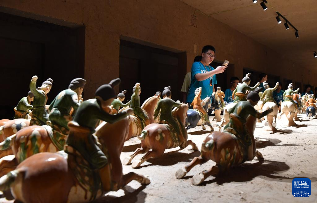 7月21日,參加研學活動的學生在南石山村的唐三彩文化園里參觀。