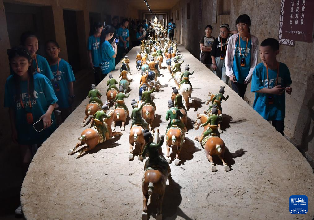 7月21日,參加研學活動的學生在南石山村的唐三彩文化園內參觀。