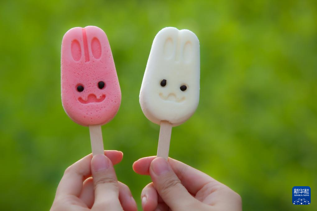 7月20日在山東省淄博市高青縣田鎮街道一處公園拍攝的卡通兔文創雪糕。