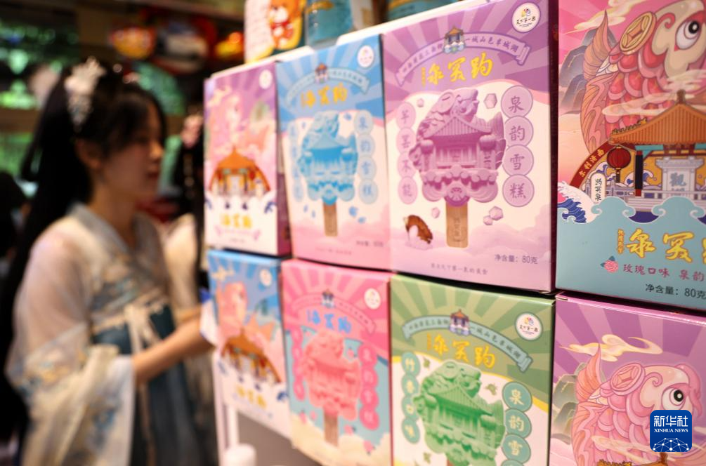 7月16日,游客在山東省濟南市趵突泉景區選購文創雪糕。