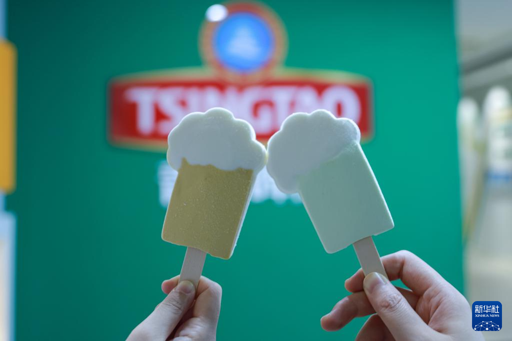 7月21日在山東省青島市李滄區第二啤酒廠純生之旅博物館拍攝的啤酒造型文創雪糕。
