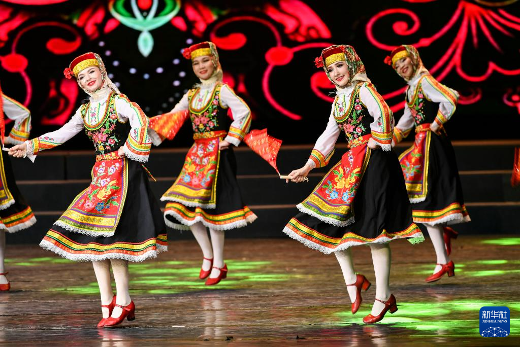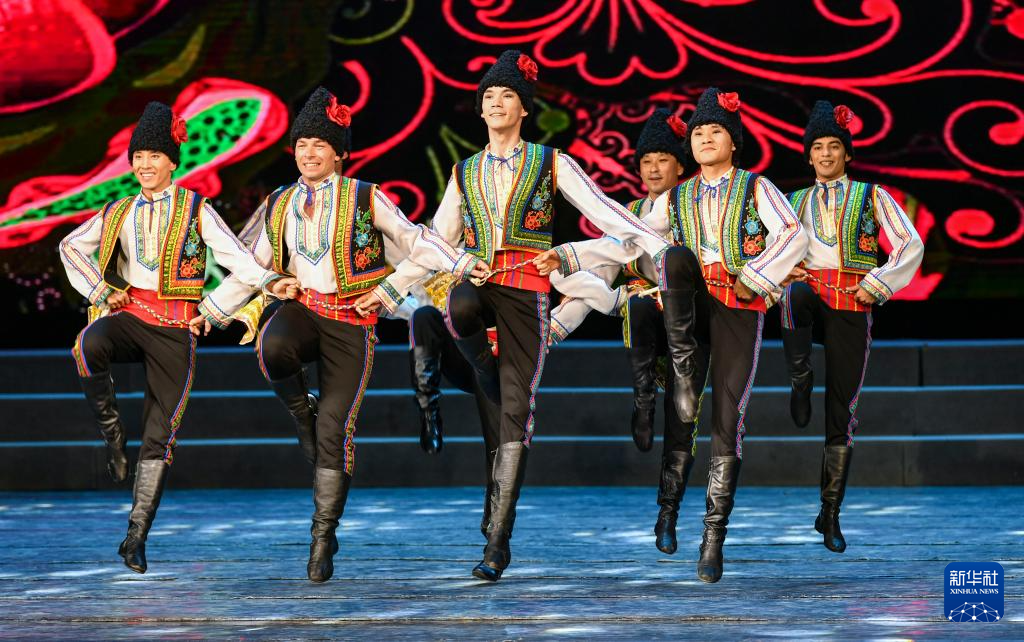 7月21日,哈薩克斯坦薩爾塔納國家舞蹈團的演員在演出。
