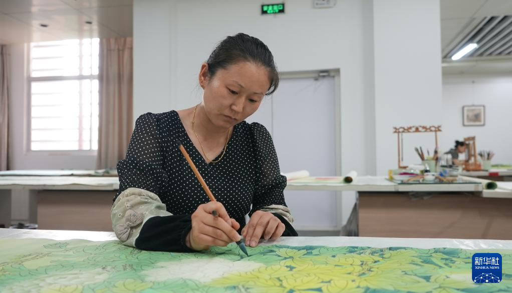 7月24日,畫師在山東省巨野縣書畫院繪制工筆畫作品。