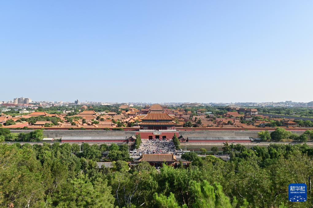 從景山上拍攝的故宮(7月4日攝)。始建于1406年的故宮是世界上現存規模最大、最完整的古代木構宮殿建筑群,位于北京中軸線的中心。1987年聯合國教科文組織將其列入世界文化遺產名錄。