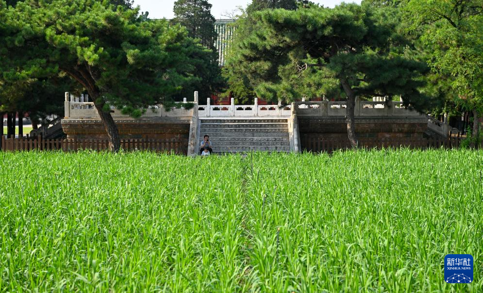 先農壇明清耤田里作物長勢喜人(7月19日攝)。先農壇始建于明永樂十八年(1420年),是明清兩代帝王祭祀先農神和舉行親耕典禮的場所。