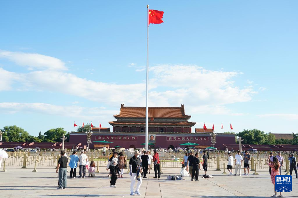 人們在天安門城樓前參觀游覽(7月9日攝)。