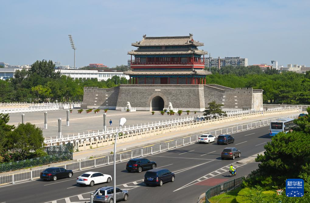 不久前修繕完成的永定門城樓(7月10日攝)。