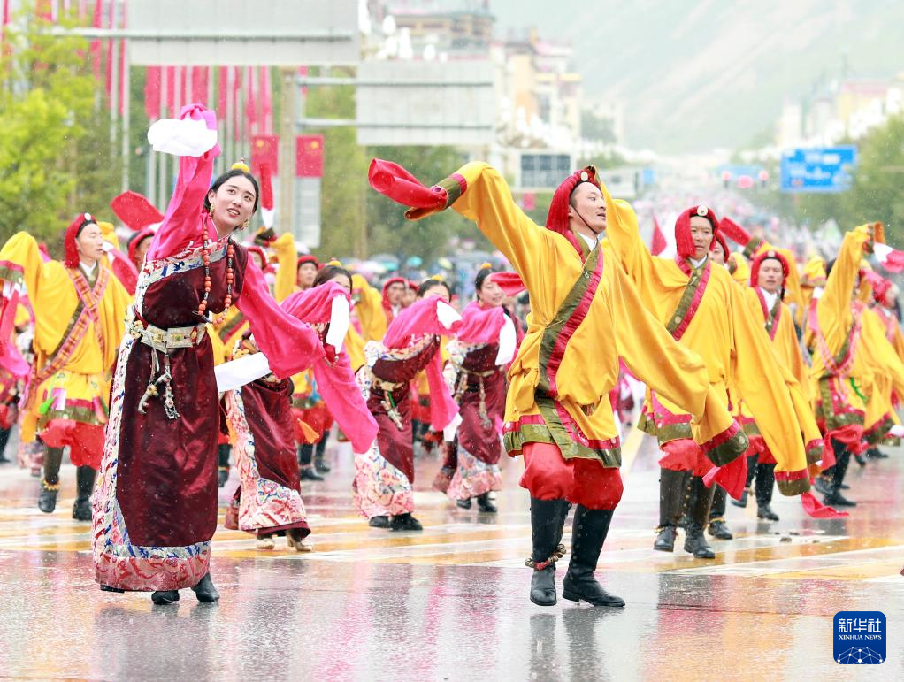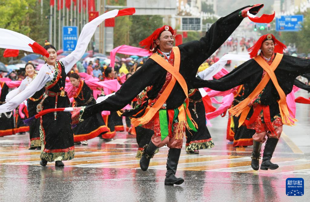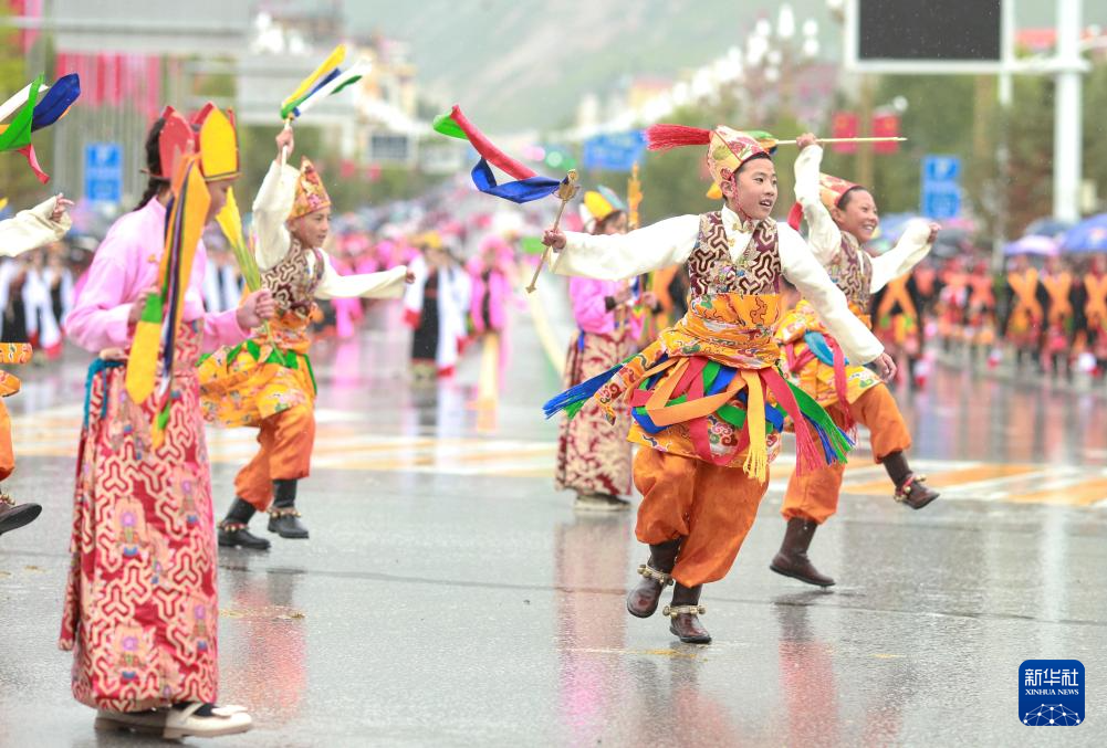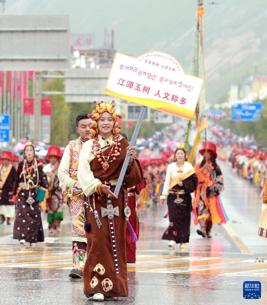 當日,“瀟灑的康巴人”巡游活動在青海省玉樹藏族自治州玉樹市舉行。多個方隊進行巡游表演,展示藏族獨特的民俗文化。