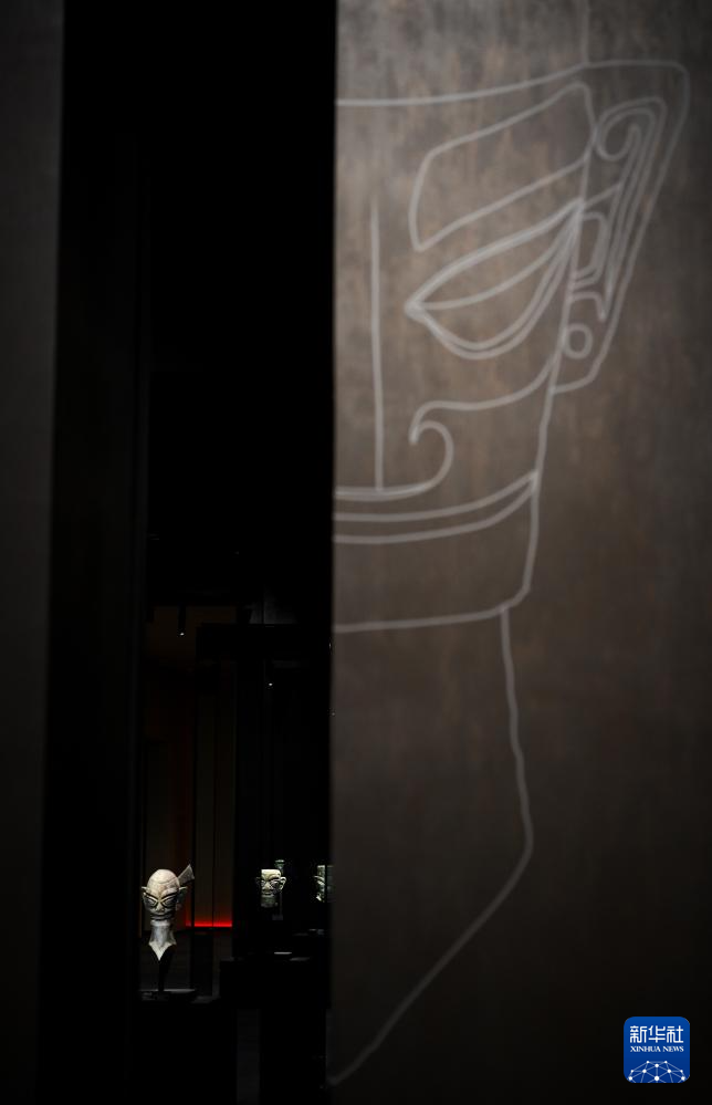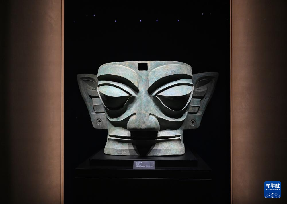 7月26日在三星堆博物館新館拍攝的青銅大面具。