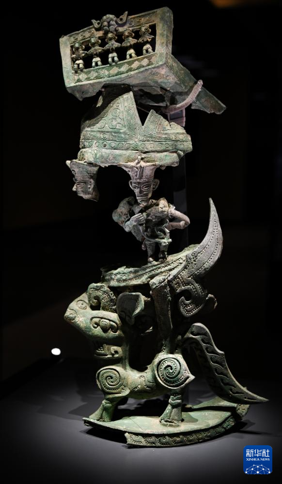 這是7月17日在三星堆博物館新館拍攝的青銅神壇(殘件)。
