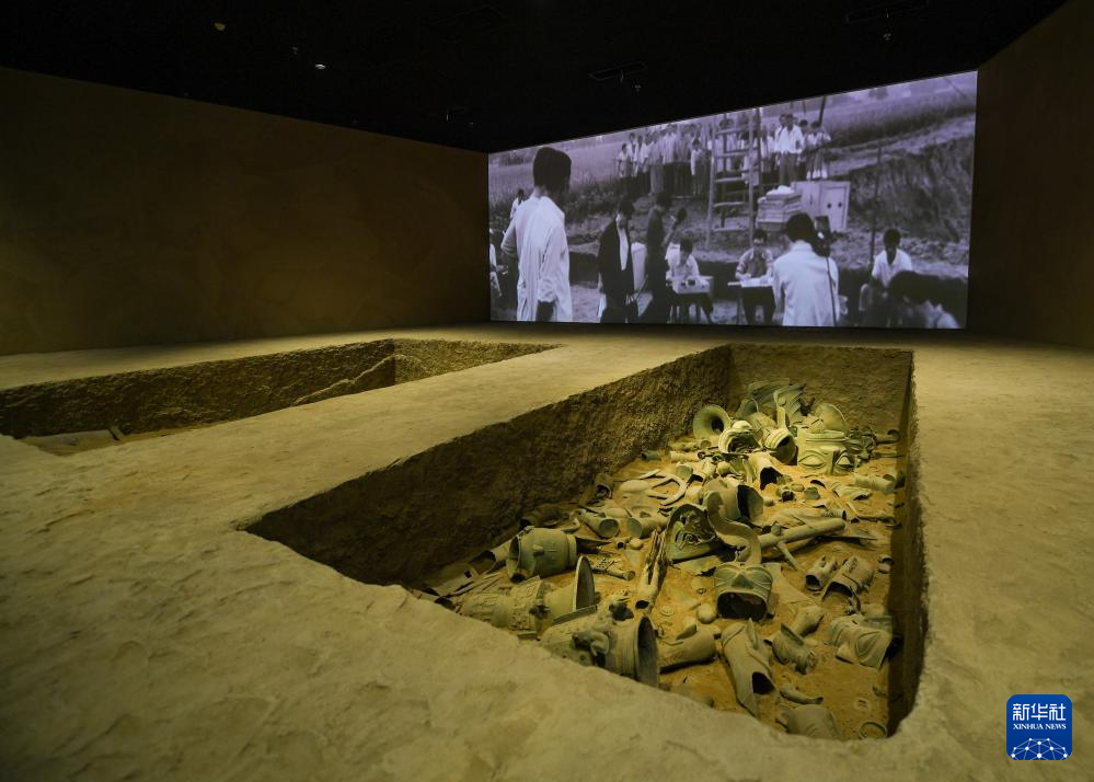 7月26日在三星堆博物館新館拍攝的還原發掘現場情景展陳。