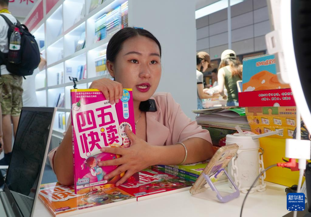7月27日,在第31屆全國圖書交易博覽會上,一名出版社的工作人員在進行網絡直播銷售圖書。