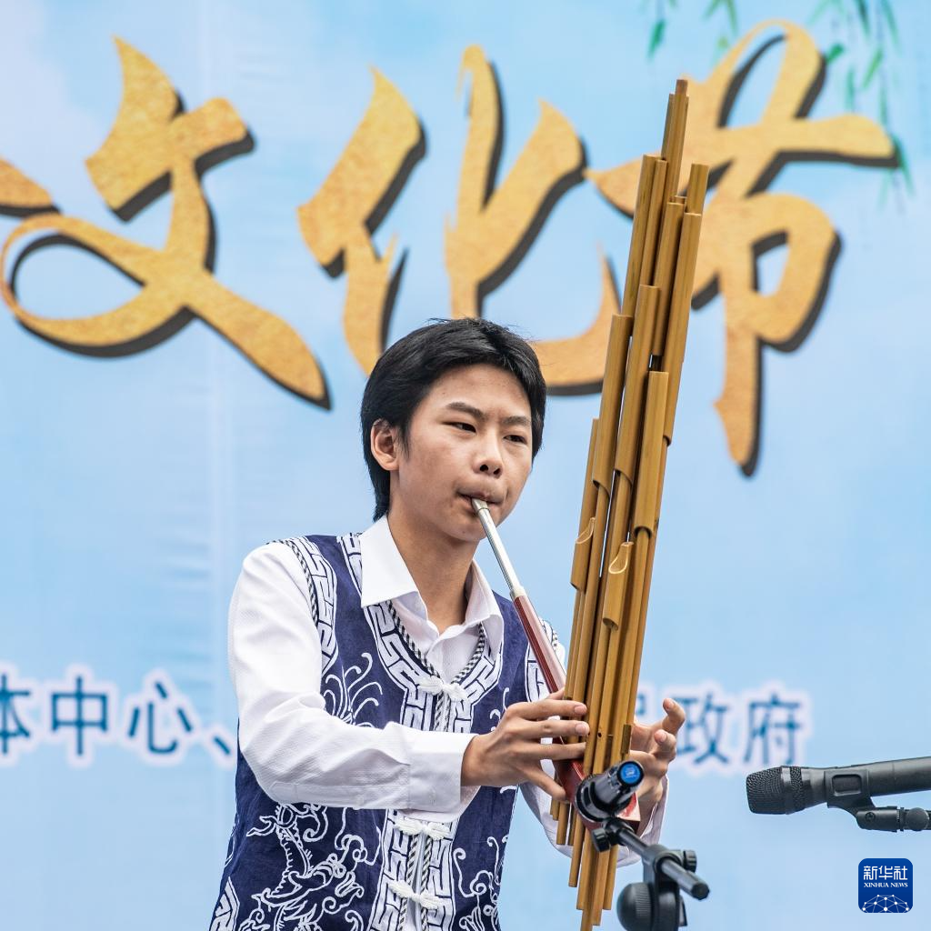 7月29日,在重慶市綦江區安穩鎮,當地居民身著傳統服飾在“苗家伏羊節”上表演節目。